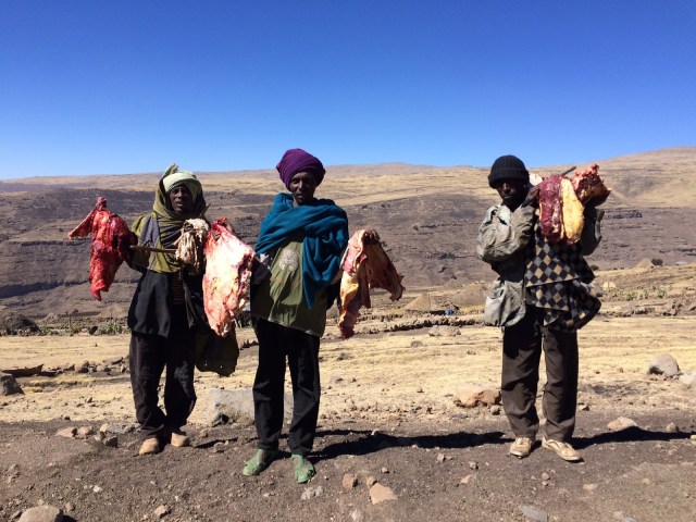 This recipe comes from a man called Goshe, who acted as our ‘scout’ for the 250km trek we did in the Ethiopian Highlands and was, as far as I could tell, an absolute hero. Goshe was one of those infallible beings who I rarely saw eat, sleep or complain. He could walk for hours in blistering heat without drinking a drop of water, then stay awake all night keeping guard. He carried all our food, never broke into a sweat and gracefully made his way across rivers. One evening he slaughtered, butchered and then ate (almost completely to himself) a whole goat.