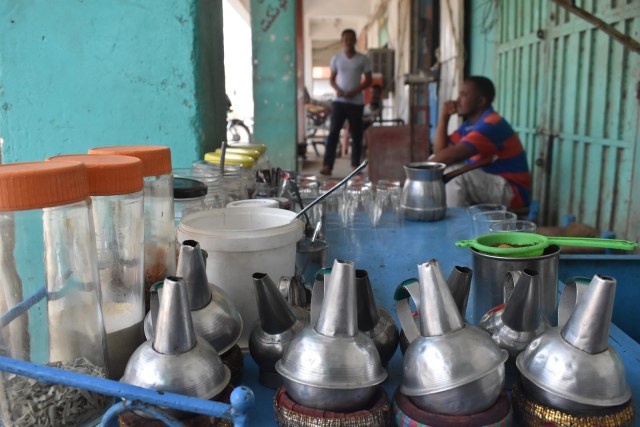 | A ‘jabana’ (Sudanese coffee) stall in Kassala, near the Eritrean border |