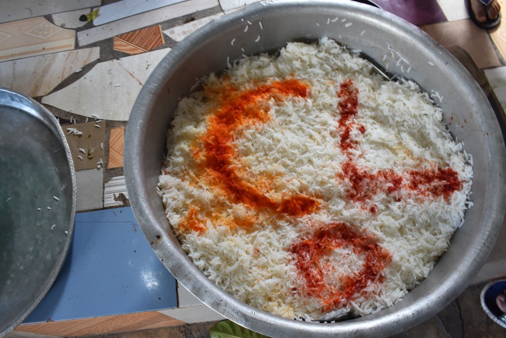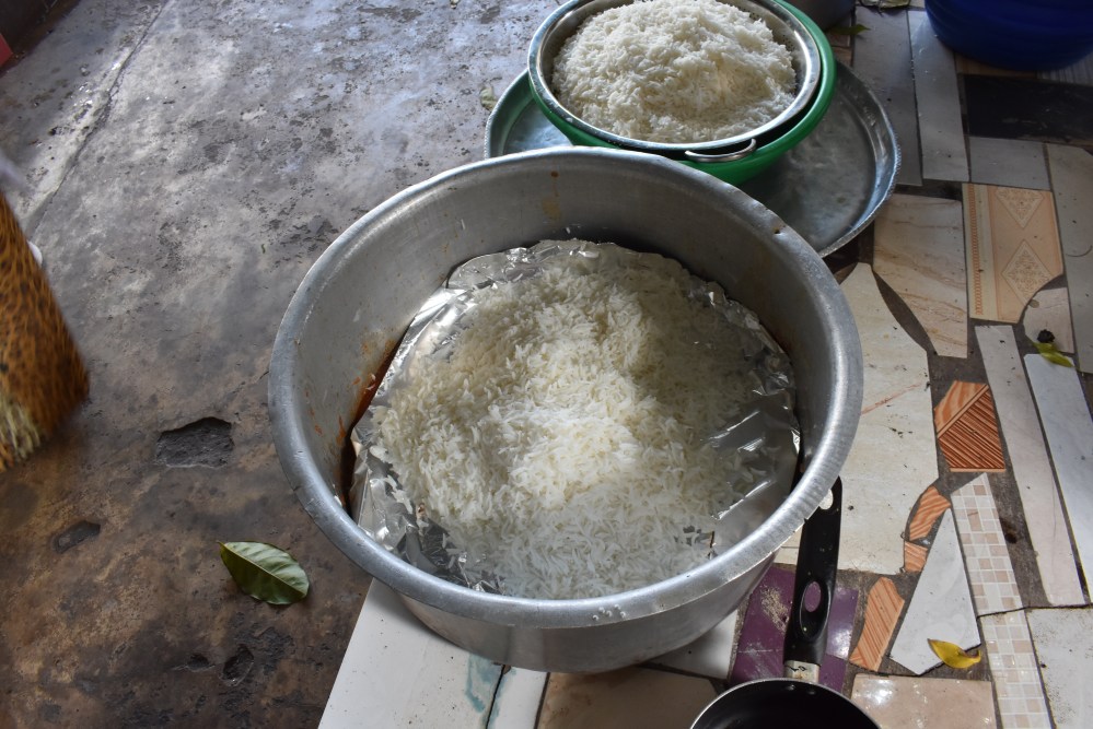 Wind on one month and I am desperately trying to remember Ahmed’s name in my phone contacts, luckily Cass comes to the rescue. After checking with Husna, Ahmed messages to let me know that Friday morning would be best as his mum will be cooking biryani as well as urojo. On Fridays the Indian communities of Zanzibar and Dar es Salaam like to eat biryani or pilau, a tradition that was originally brought over by the Pakistanis. Friday is a holy day and holiday for Muslims and biryani, with its colourful rice, unctuous meat and incredible aromas of cardamom, cinnamon and spices, is a showstopper dish, fitting for a holy day.