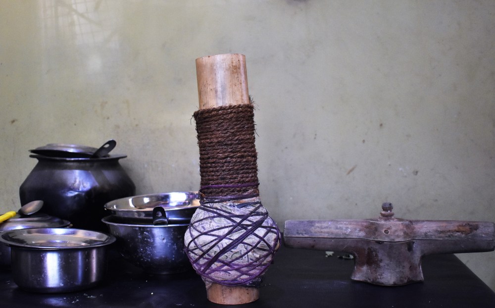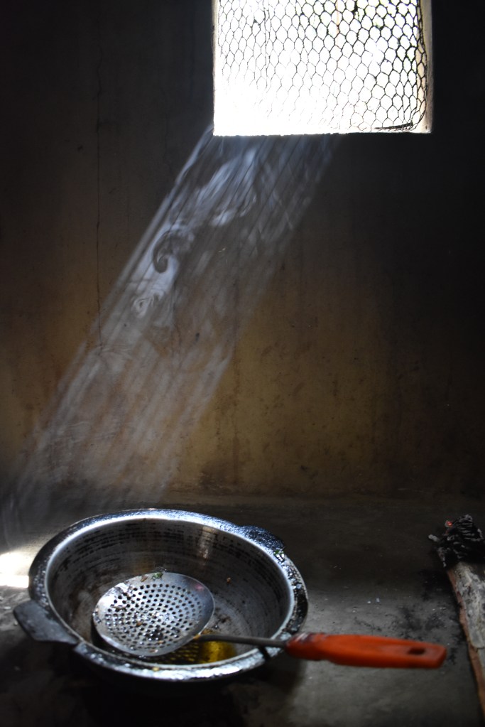 Looking around Vasanthy’s kitchen I see wooden and straw utensils hanging from the walls which I learn are the traditional tools used for making string hoppers and pottu (I silently kick myself for not having met her earlier, I would have loved to see her making string hoppers!). A chopping board gathers dust in the corner as Vasanthy, like almost every other person I have cooked with in the last year, prefers to cut vegetables into her hand using a well-loved knife. Although her kitchen has both wood and gas-fired cookers, Vasanthy only cooks for tourists on the gas, believing that the wood-fired food is better for your health. I’m not sure about the health properties, but later on when I eat the various curries, the smoky flavour of the curries cooked over wood are far tastier than the gas cooked ones.