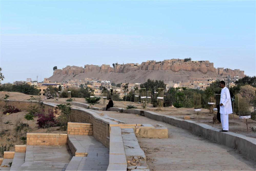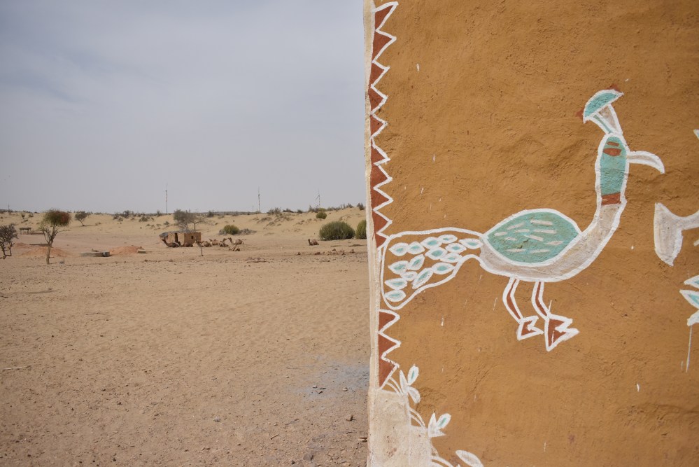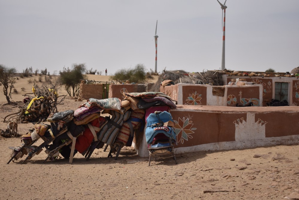 Out of the shade and mystery of the fort walls lies the Thar desert. Flat, poker straight roads lead out from the city, then go on for miles to the surrounding desert that is a mix of scrubby bush, wind turbines and desolate looking villages. Sandy takes us to his village for some chai and lunch, and a glimpse into what living in a desert village must be like.