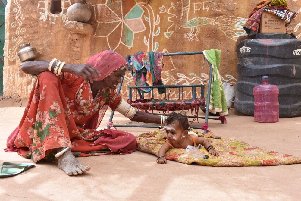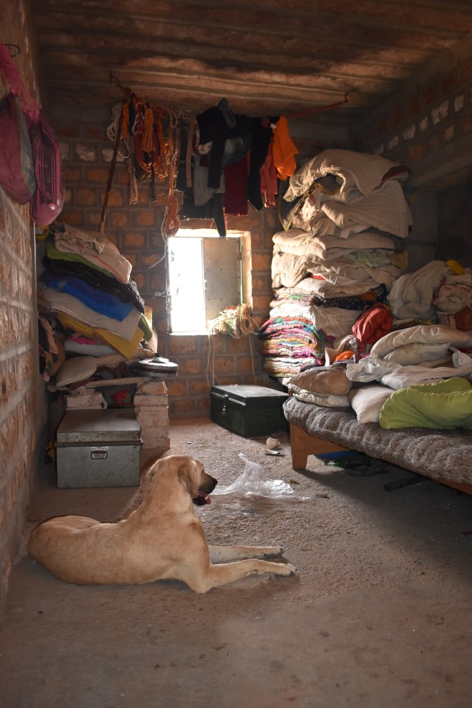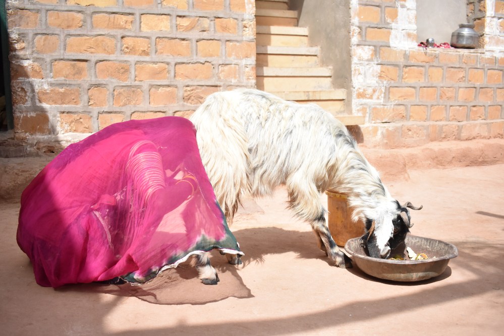 For starters, there is no electricity, despite the huge wind farm that is now surrounding his village and many other we travelled through. When milk is needed for chai they simply bring the goat into the courtyard and milk it. After monsoon there is a small window where they can grow papayas and some other fruit, but almost nothing grows for the rest of the year; instead they make their living from their goats and camels. Once a week a bus comes to the village to deliver food and supplies for the families.