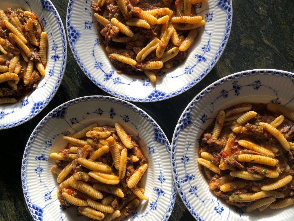 This recipe comes from my dear cousin-in-law, better known as the charming, hard-working and endlessly talented ‘Rosie MacKean, Pasta Queen’. The Pasta Queen hosts pasta masterclasses in London, ran Angela Hartnett’s pastaficio in Covent Garden and her ‘Tuesday Tutorials’ on Instagram are fast becoming legendary. Needless to say, her oxtail ragu with handrolled maloreddus, is an absolute belter.